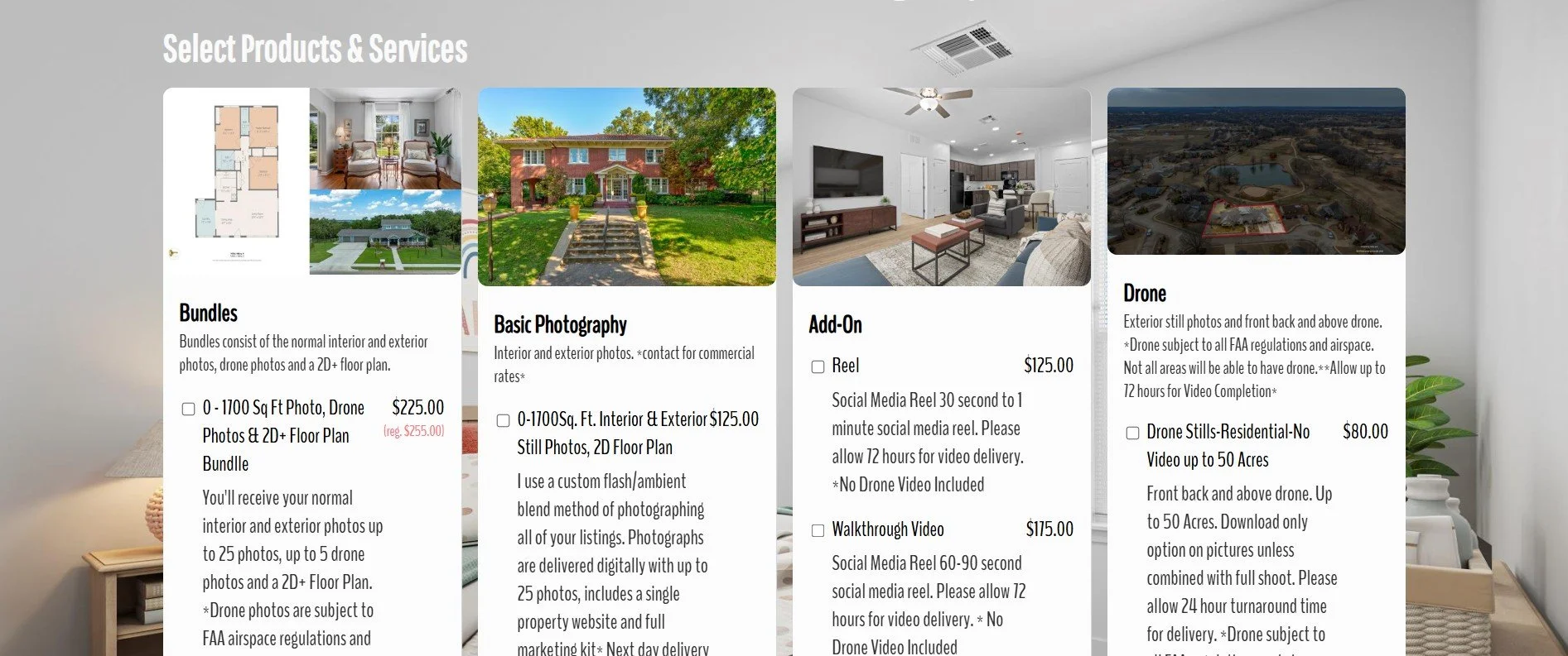Note that these prices are for real estate photography only, and cover the towns of Bartlesville & Dewey, Oklahoma.